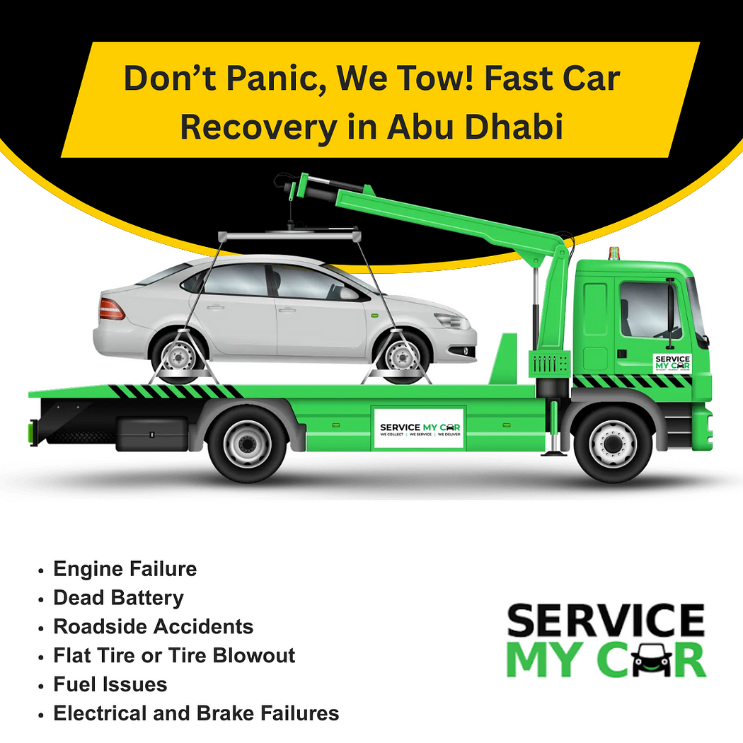 When you find yourself stranded on the road with a broken-down vehicle, a flat tire, or a dead battery, panic can quickly set in — especially under the scorching Abu Dhabi sun. But there’s no need to worry. Service My Car is here to get you moving again with fast, professional, and reliable car recovery services in Abu Dhabi.